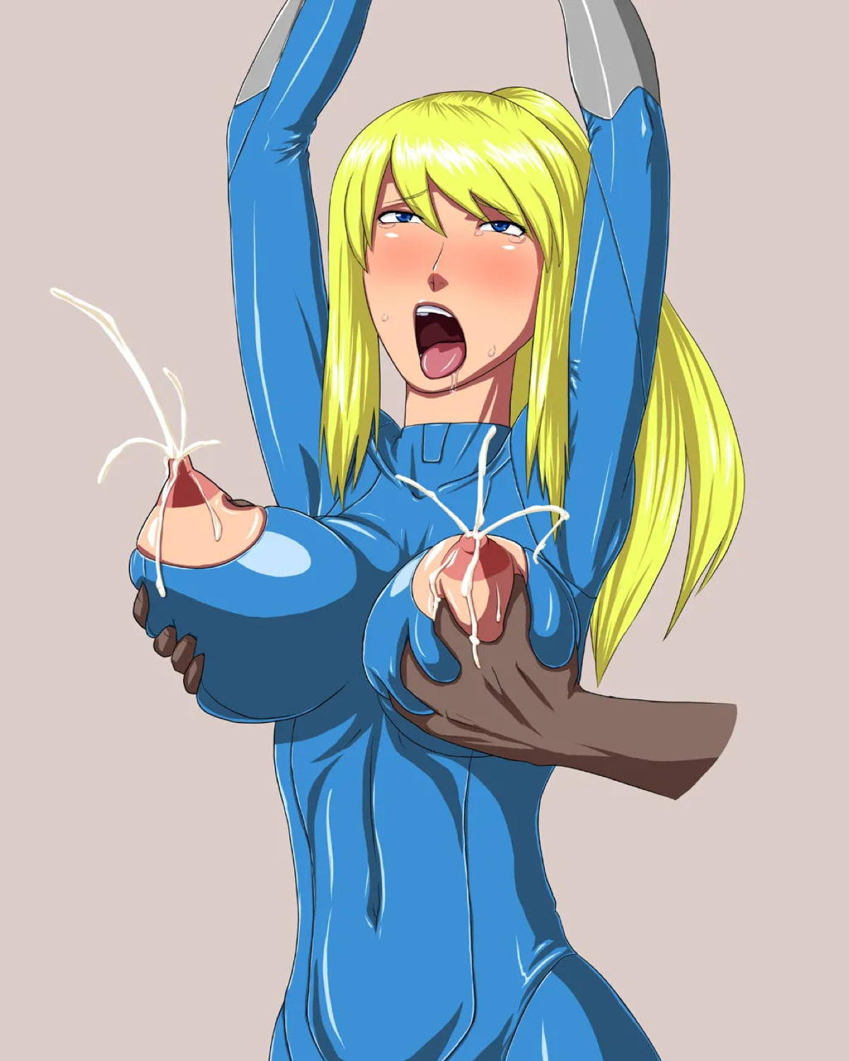 サムスがボディスーツの匂いを嗅がせながら手コキする♡