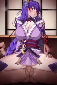 ファミレスでおっぱいを見せて誘ってくる雷電将軍